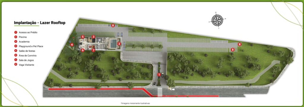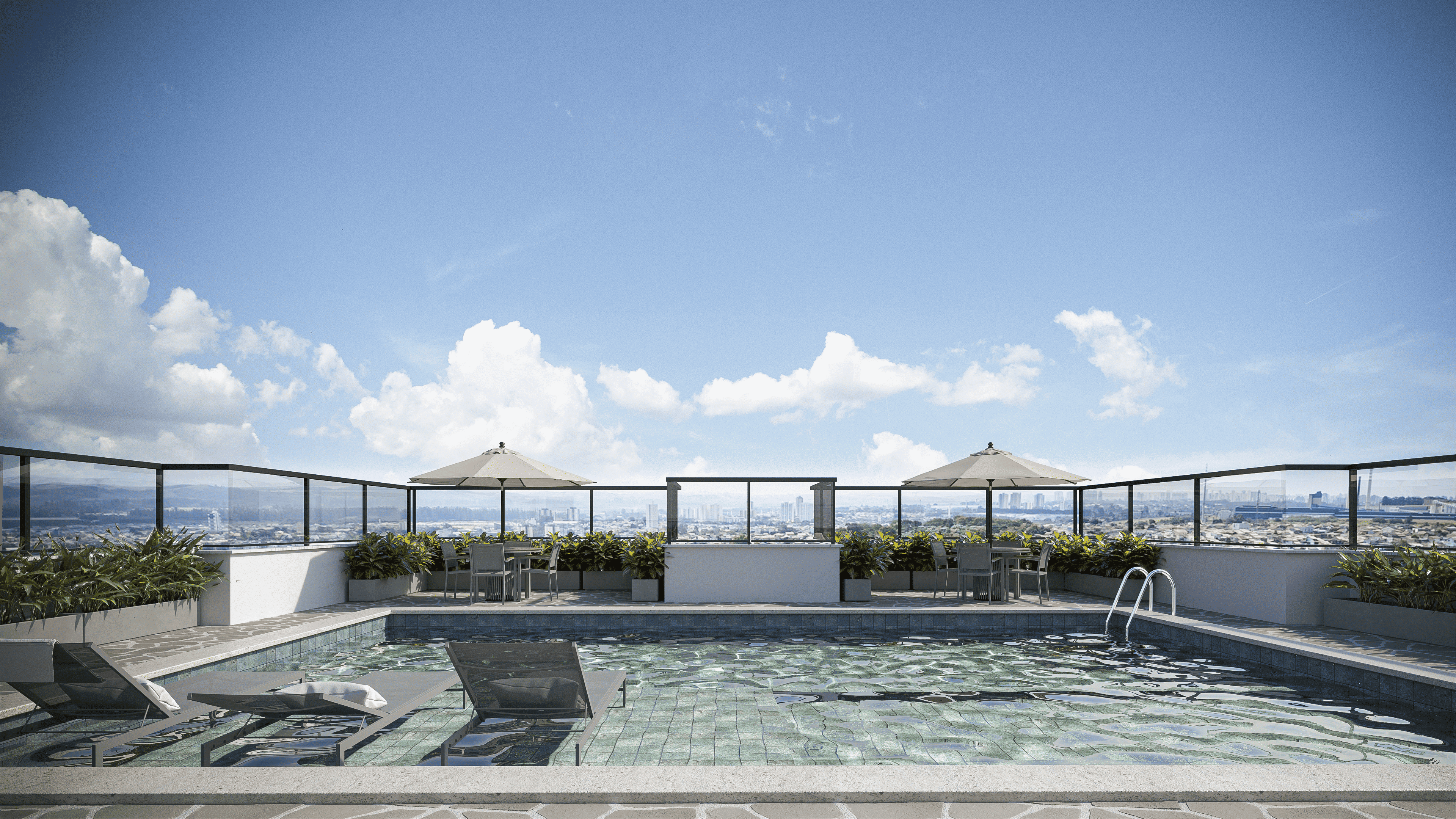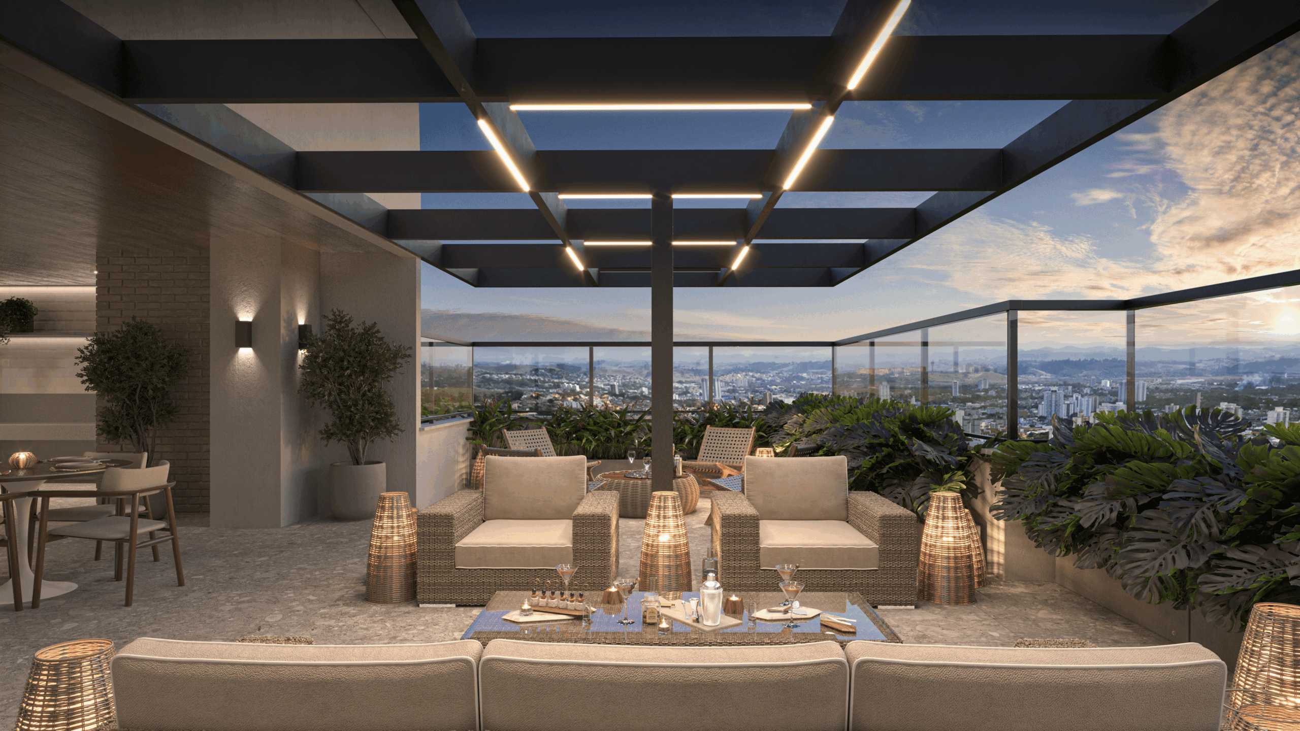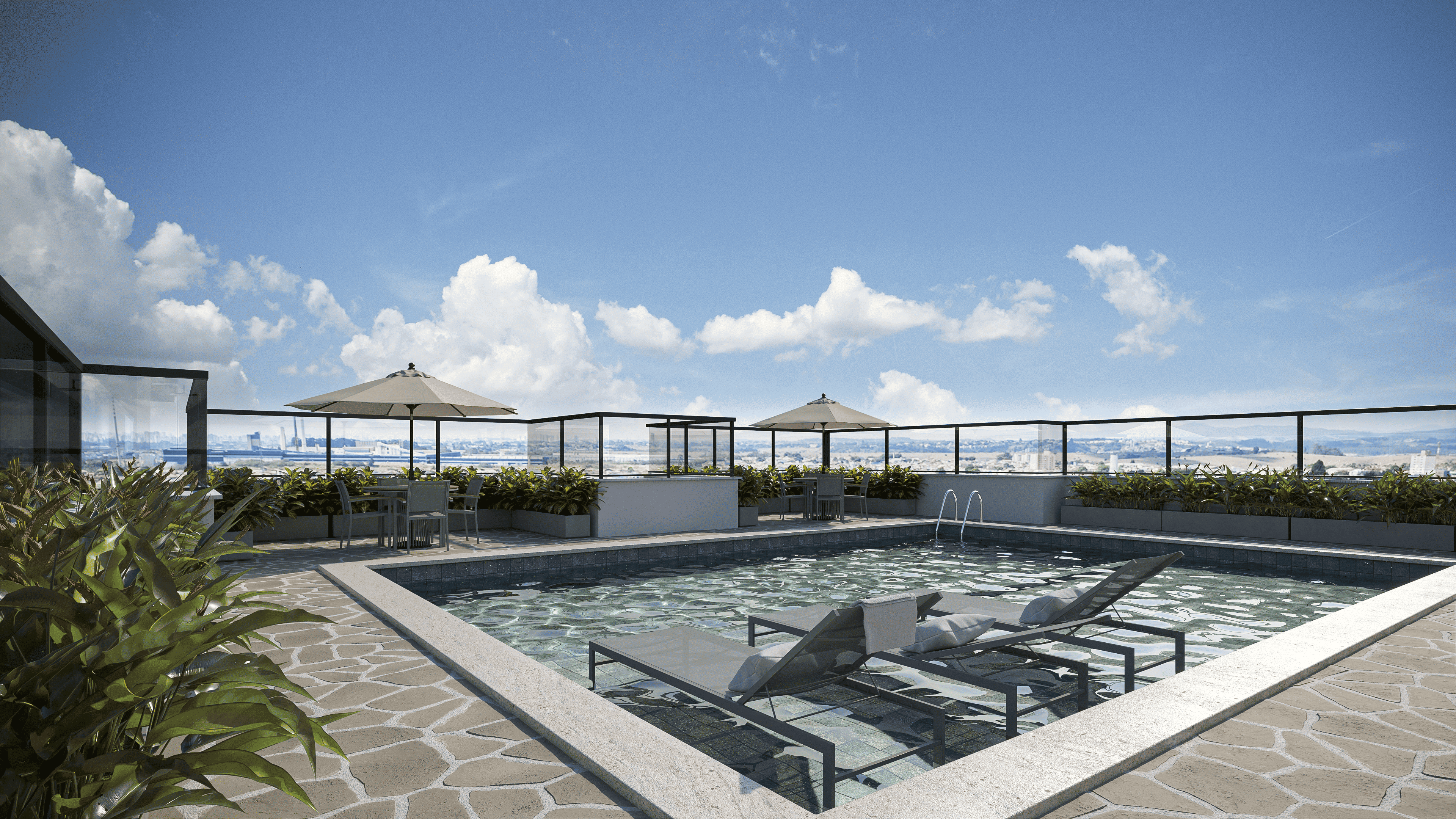 O grande destaque do empreendimento é o exclusivo lazer rooftop, o único da região, com vista panorâmica 180° do TOPO, proporcionando momentos únicos, convivência especial e uma perspectiva privilegiada da cidade.